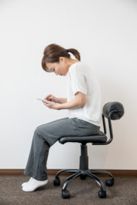 このような不良姿勢が長時間続くと、体を支える筋肉が弱くなるか、うまく使えなくなってしまうことで、猫背になりやすくなります。